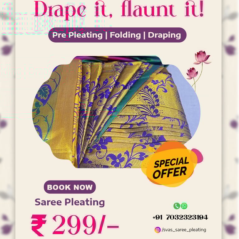 We created a logo and branding for SVAS Saree Pleating in the textile saree sector, along with social media posts to enhance their brand visibility.